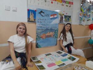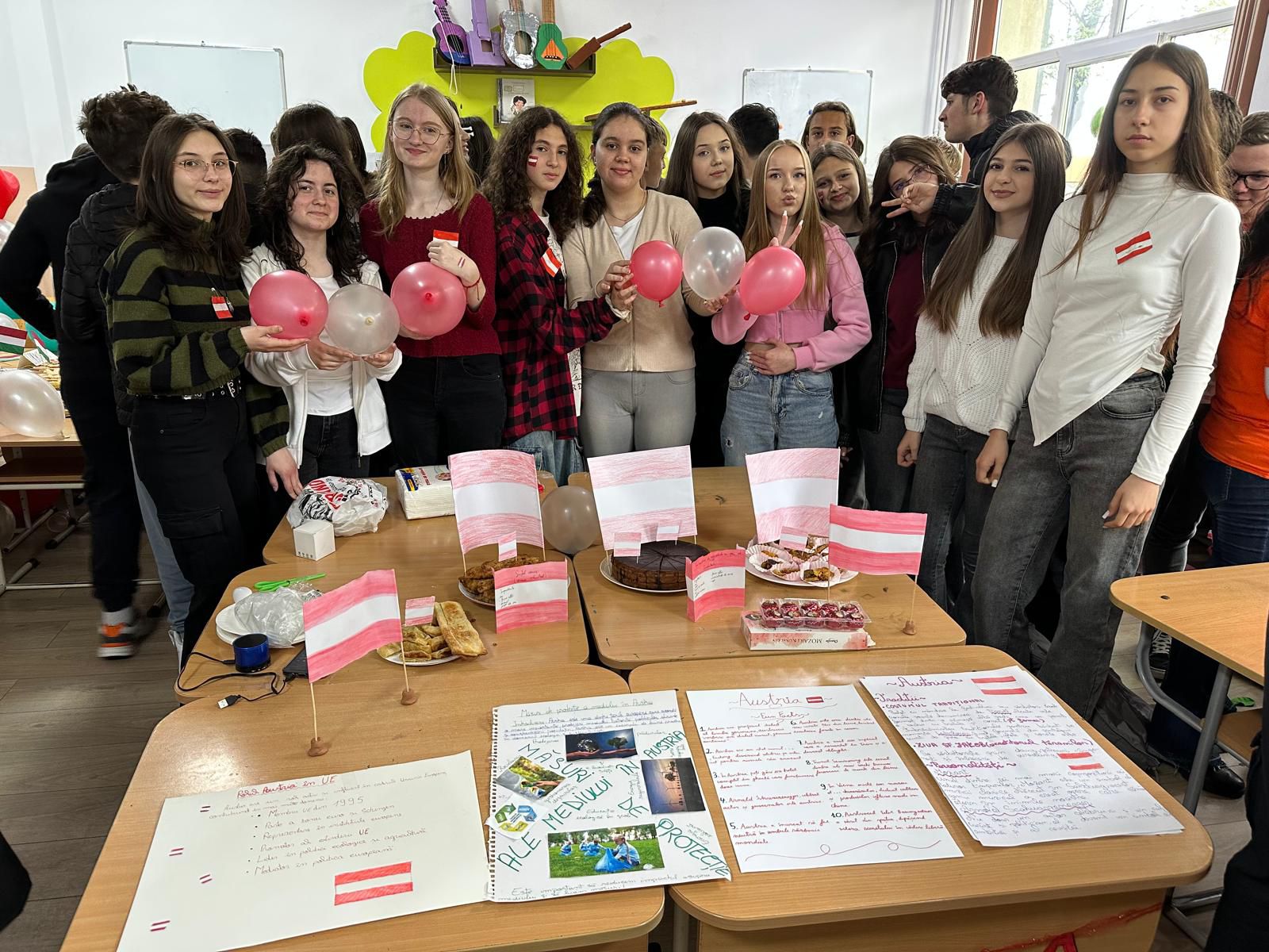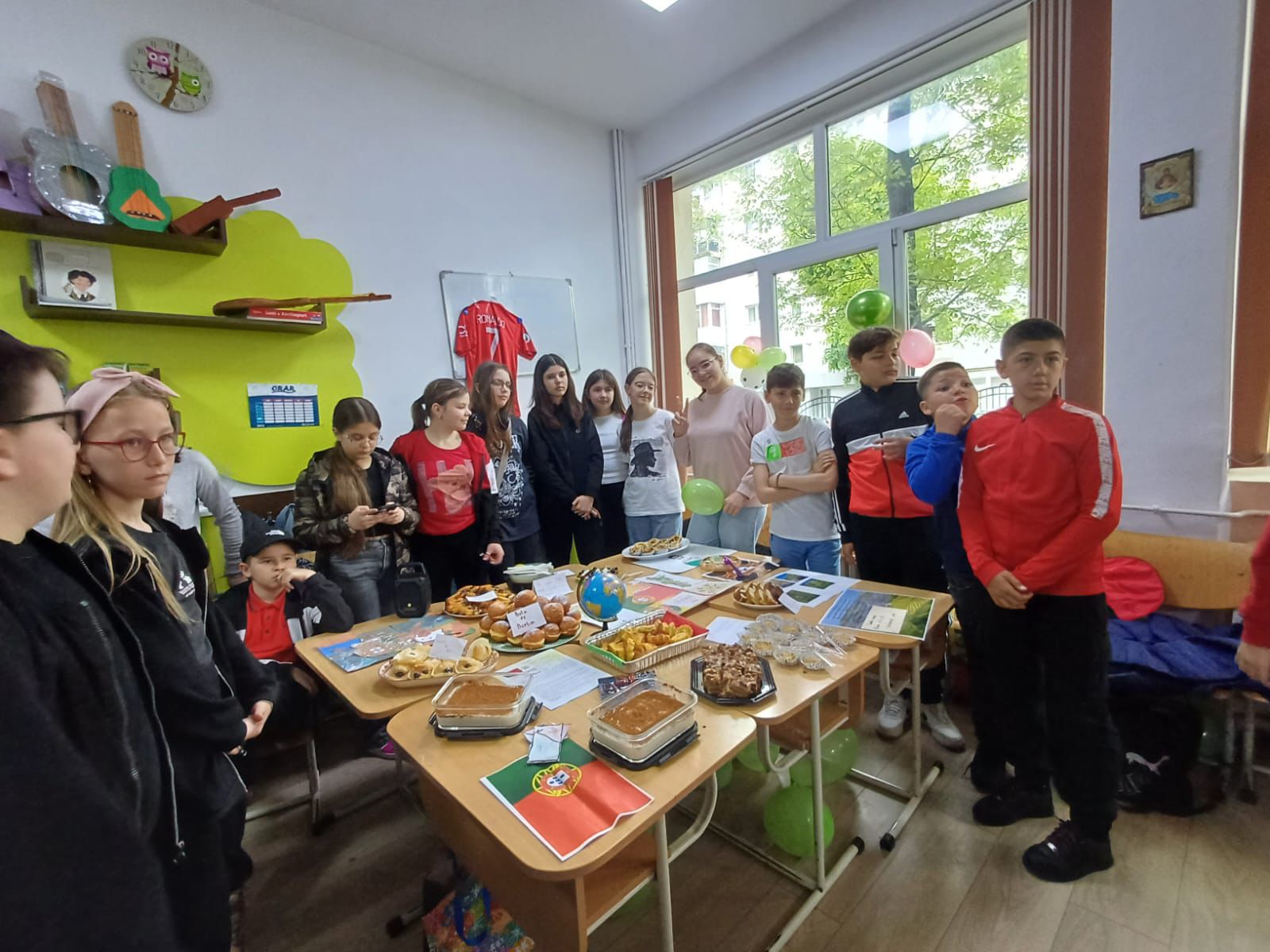 O a doua activitate a avut loc astazi cand elevii s-au plimbat prin toate țǎrile Uniunii Europene, alǎturi de echipa de ambasadori juniori a liceului şi elevii tuturor claselor, într-un Târg European unde clasele înscrise au organizat standuri dedicate fiecărei țari.