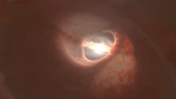 Astronomii spun că o posibilă explicație pentru această bizară formațiune stelară ar fi că una sau mai multe planete se află în formare în interioriul inelului.