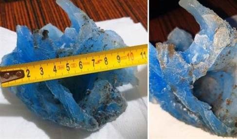După ce a cercetat amănunțit bulgărele, profesorul ieșean a precizat că fragmentul și-a pierdut culoarea în timp, după o săptămână de la păstrare, căpătând o culoare mai slab evidențiată decât înainte. „Compusul analizat conține uree! Da! Dar, atenție, nu este uree umană! Ureea din bucata de gheață nu provine din urină! Bucata de gheață conține de asemenea un amestec de particule de praf și variați poluanți din atmosferă, conține potasiu, sodiu, sulf, calciu. De unde provine ureea? Pe de o parte, aceasta se regăsește sub formă lichida sau solidă în îngrășămintele agricole. Funcție de tipul de îngrășăminte, de natura solului, de natura plantelor, etc. aceste îngrășăminte pot avea granulații diferite și culori diferite, inclusiv poate fi de culoare albastră! Culoarea albastră poate rezulta din diverse interacțiuni fizico – chimice cu alți compuși cu care se află în amestec sau vine în contact ori poate fi dată de rășinile speciale folosite de producători pentru a acoperi granulele. Pe de alta parte, ureea este folosită pentru reducerea poluării cu NOx produși de mașinile diesel (acestea au un rezervor separat cu uree/AdBlue, diferit de cel de combustibil )- sistem de injecție cu AdBlue / SCR – Selective Catalityc Reduction”, susține profesorul Gurlui.
