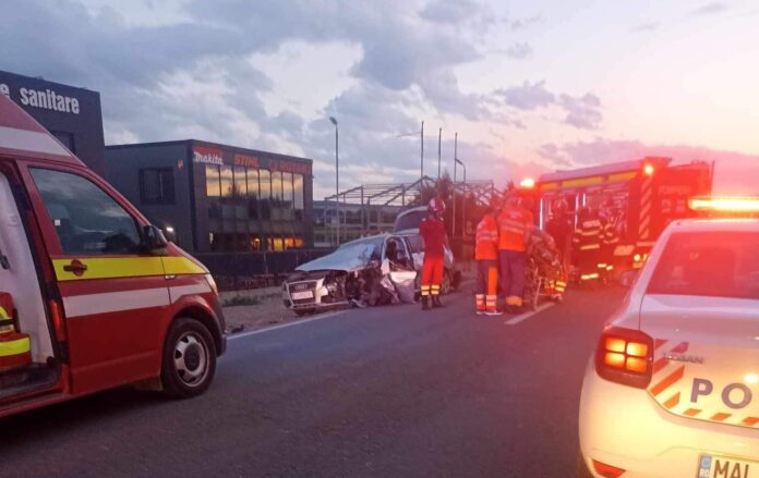 Accident rutier in suburbia Gastesti. Un șofer a intrat cu un autoturism într-un stâlp de pe marginea străzii.
