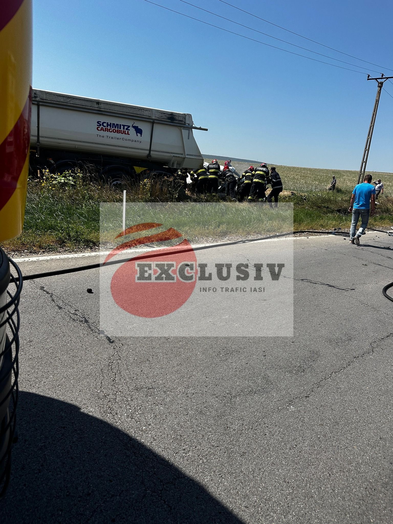 În urma coliziunii au rezultat 4 victime, iar autoturismul a luat foc, conform precizărilor ISU Iași.