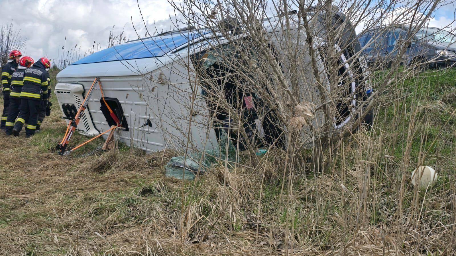 Accident rutier la ieșirea din municipiul Pașcani spre Blăgești, duminică, 6 aprilie. Un microbuz s-a răsturnat, iar 15 persoane aflate în acesta s-au autoevacuat, toate conștiente. Din ordinul Inspectorului șef, gl.bg. Ionuț Ciprian Grădinaru a fost activat Planul roșu de intervenție.