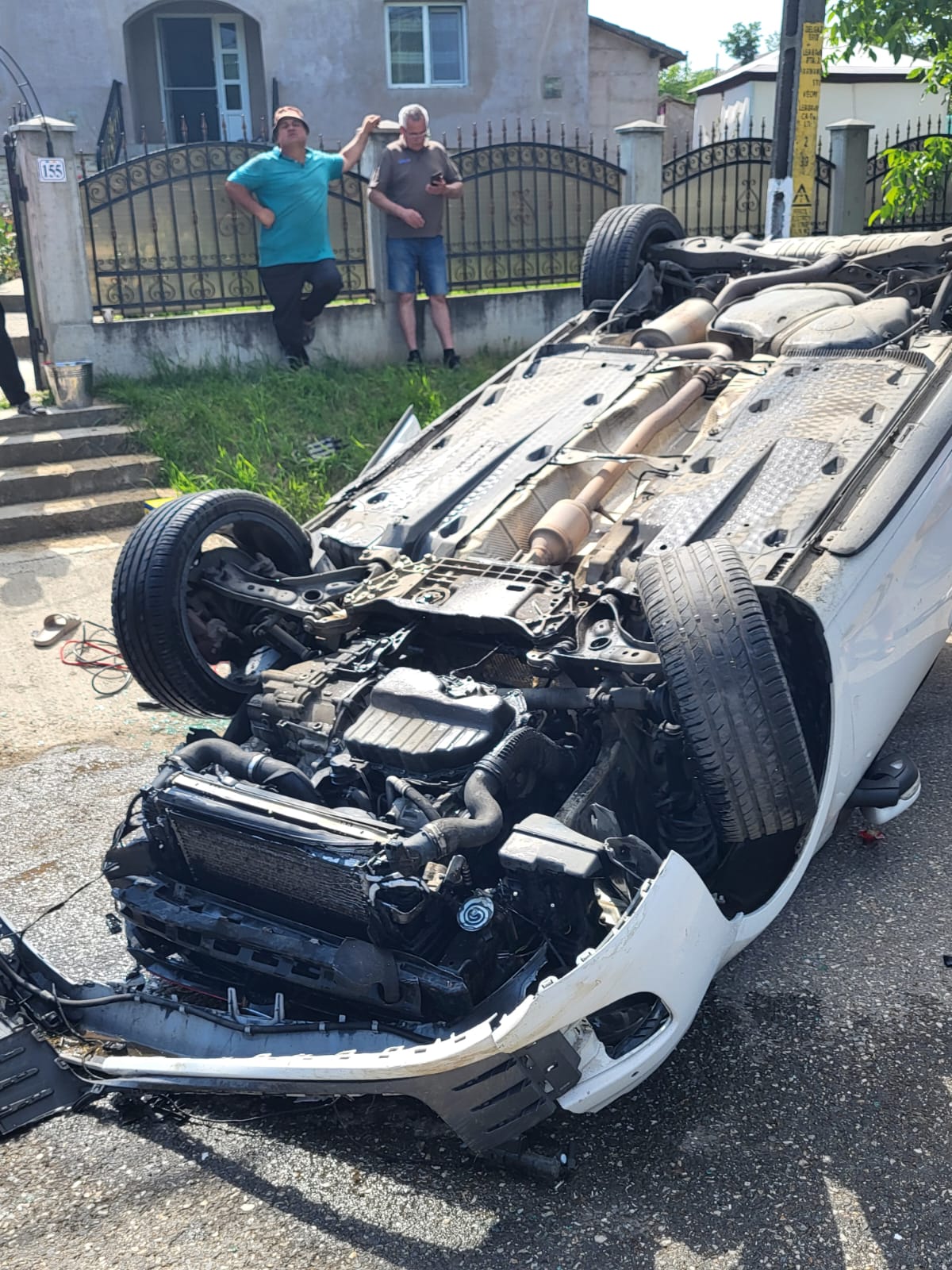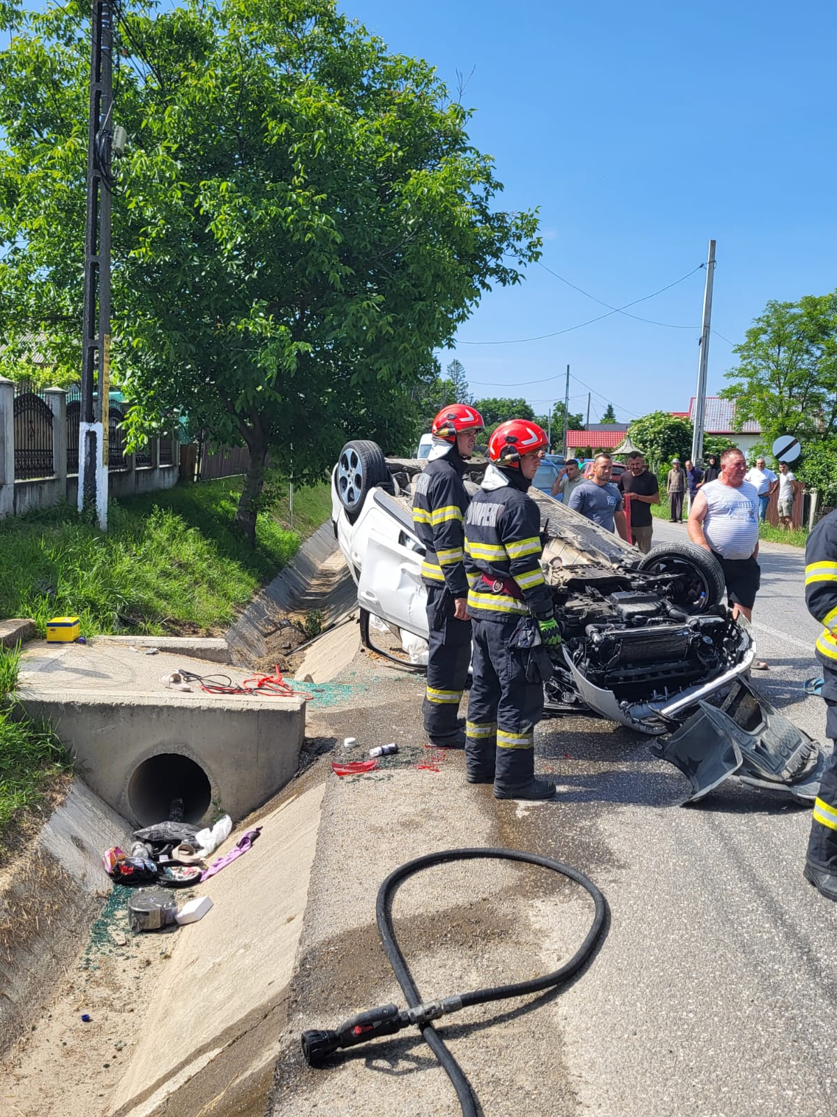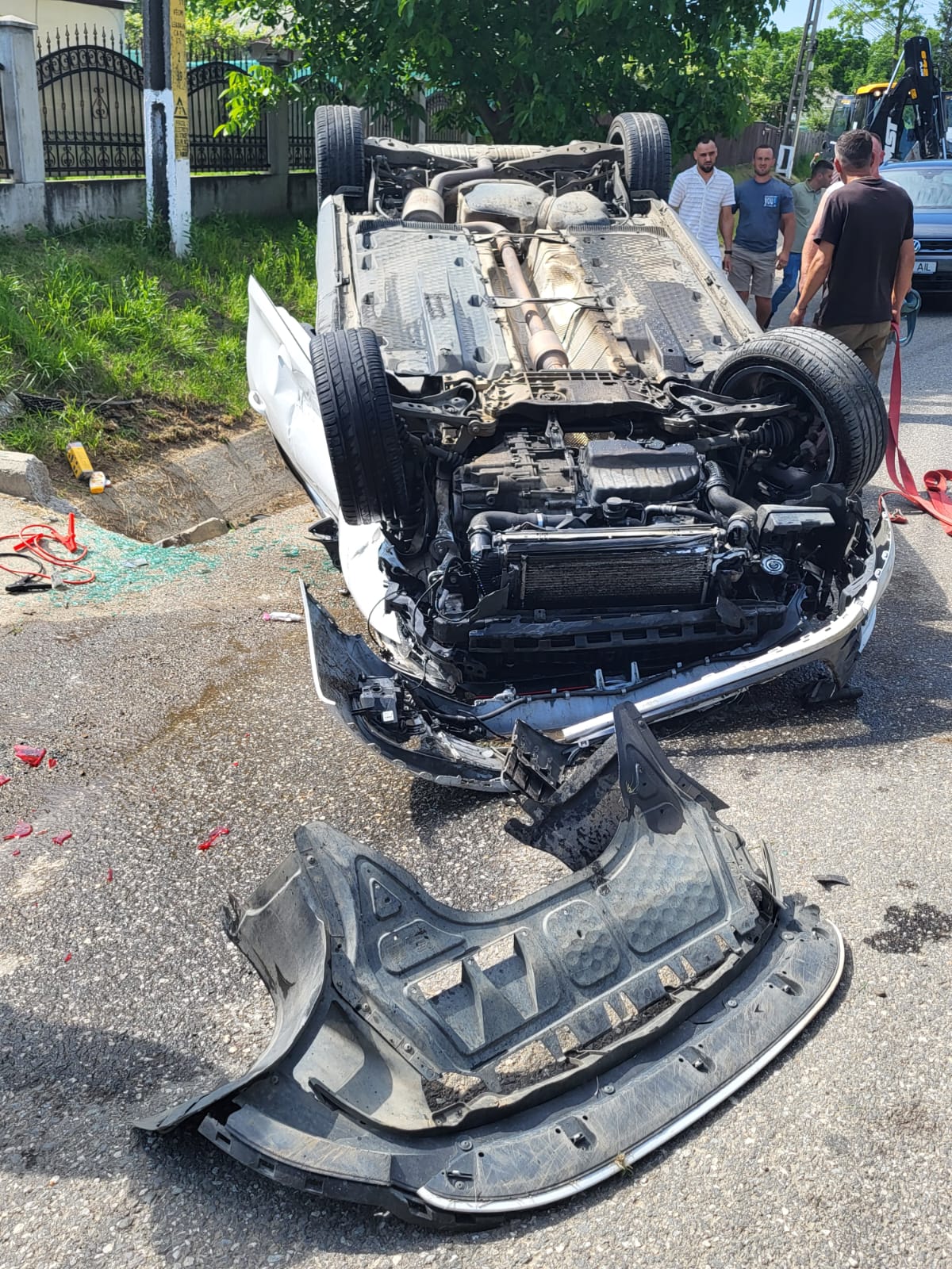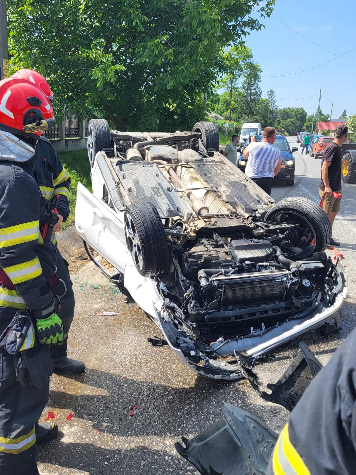 Accident rutier în localitatea Hărmăneștii Vechi – autoturism răsturnat, două victime evaluate medical