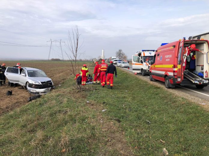 Accident rutier cu cinci victime, miercuri, 2 noiembrie, pe drumul national 28, in localitatea Ciohorani. Doua masini au ajuns pe camp, dupa o coliziune puternica.