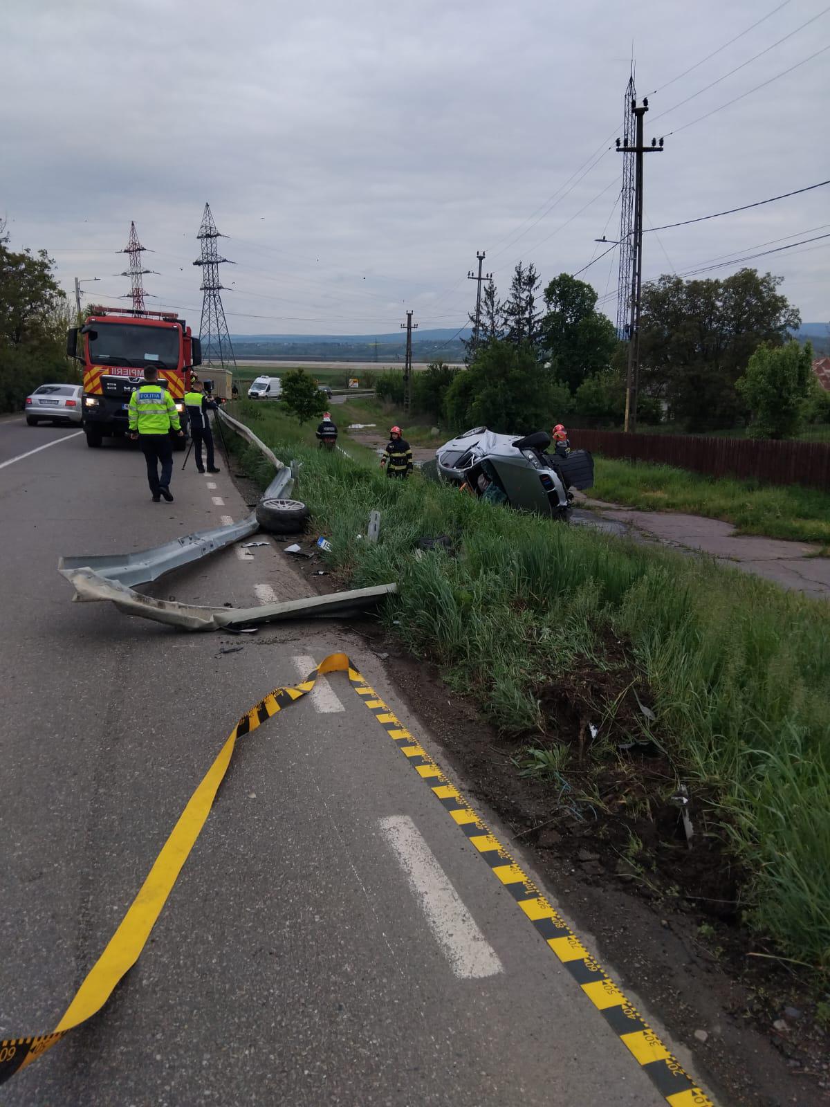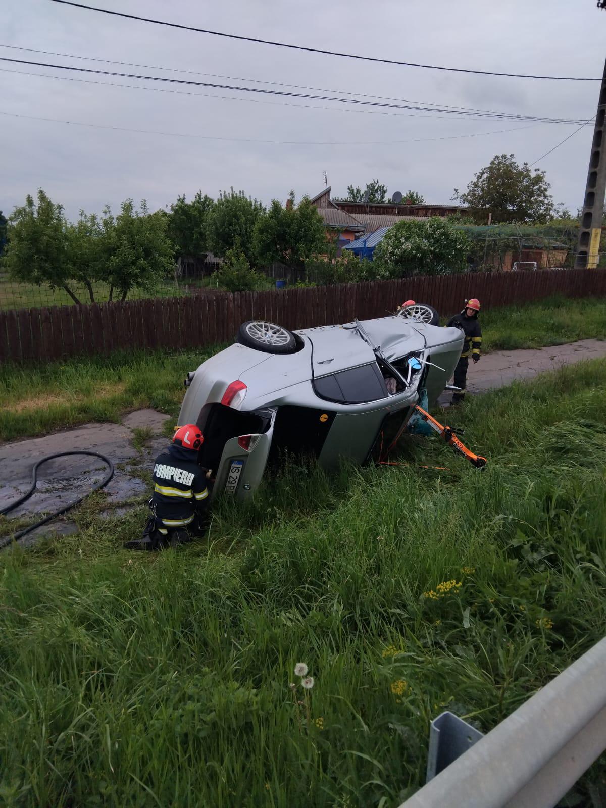 Accident rutier joi dimineață, 8 mai 2025, la Lespezi. O mașină a lovit o bară de protecție din metal, iar apoi s-a răsturnat. La fața locului au fost trimise mai multe echipaje de intervenție atât ale pompierilor, cât și ambulanță și poliție.