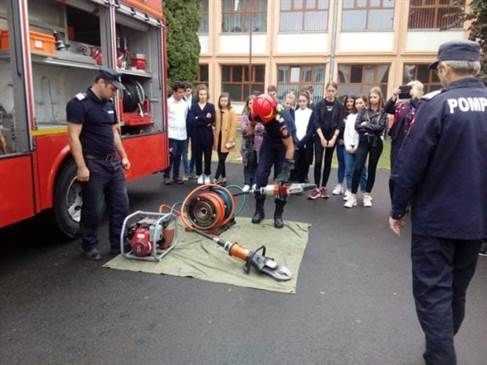 Membrii echipajului de intervenție au prezentat elevilor echipamentul specific și modalitatea de funcționare a acestuia.