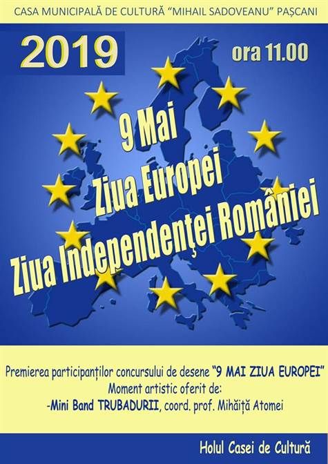 Joi ,9 mai , incepand cu ora 11.00, sunteti invitati la Casa de Cultura a municipiului pentu a sarbatori Ziua Europei si Ziua Independenței României.