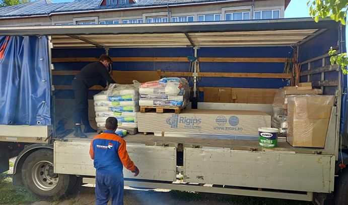 „90% din materialele de construcții, necesare reabilitării etajului 2 din clădirea situată în Piața Deal, locația unde își va desfășura activitatea Centrul de Recoltare a Sângelui Pașcani a ajuns astăzi la destinație!