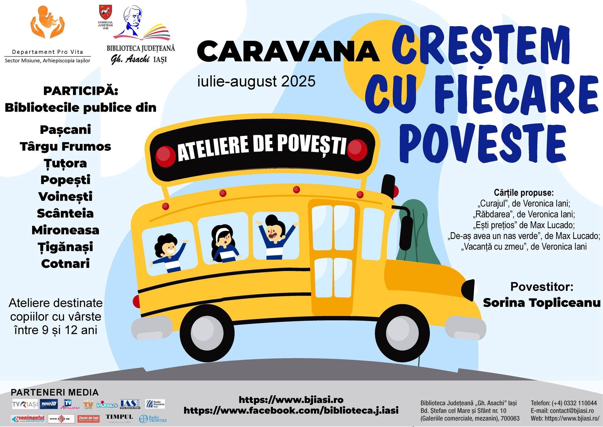 Biblioteca Municipală „Leonard Gavriliu” din Pașcani va găzdui joi, 3 iulie 2025, începând cu ora 10:00, un atelier de povești dedicat copiilor cu vârste între 9 și 12 ani, în cadrul proiectului „Creștem cu fiecare poveste”. Evenimentul este organizat de Departamentul Pro Vita al Arhiepiscopiei Iașilor, în parteneriat cu Biblioteca Județeană „Gheorghe Asachi” din Iași și face parte dintr-un program amplu de formare a caracterului copiilor prin intermediul poveștilor.