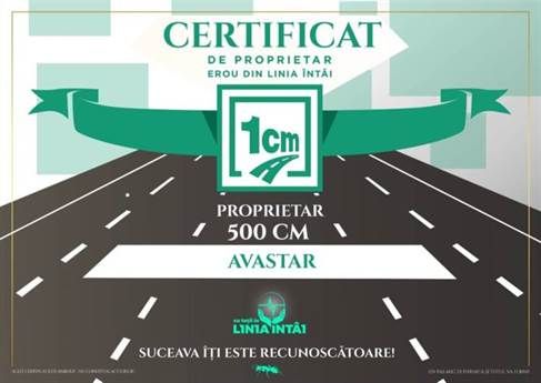Firma AVASTAR prin dl. Vasile Pleșca (nu l-am văzut niciodată, dar are încredere în noi) a donat 5000 EURO și a devenit proprietar pe 500 CM din autostrada faptelor. Dl. Pleșca a donat și vreo zece tone de carne care și acelea valorează vreo zece mii de euro. El se implică și mobilizează și pe alții să ne ajute.