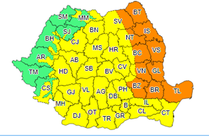 În funcţie de evoluţia şi intensitatea fenomenelor meteorologice, Administraţia Naţională de Meteorologie va actualiza prezentul mesaj prin avertizări de vreme severă imediată.