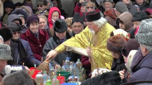 După slujba, preoţii şi credincioşii s-au îndreptat spre Crucea şi butoaiele de apă caracteristice acestei sărbători. In unele parohii, Crucea a fost facuta din gheata, iar in altele din cetina de brad, sau busuioc, impodobita cu flori.