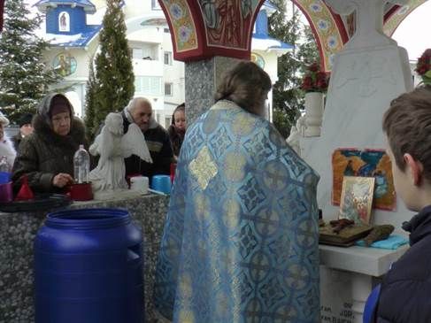 Dupa ce preotul a sfintit apa din butoaie, credinciosii au inceput sa isi puna in sticle Agheasma Mare. In acelasi timp, a avut loc o procesiune religioasa in jurul bisericii.