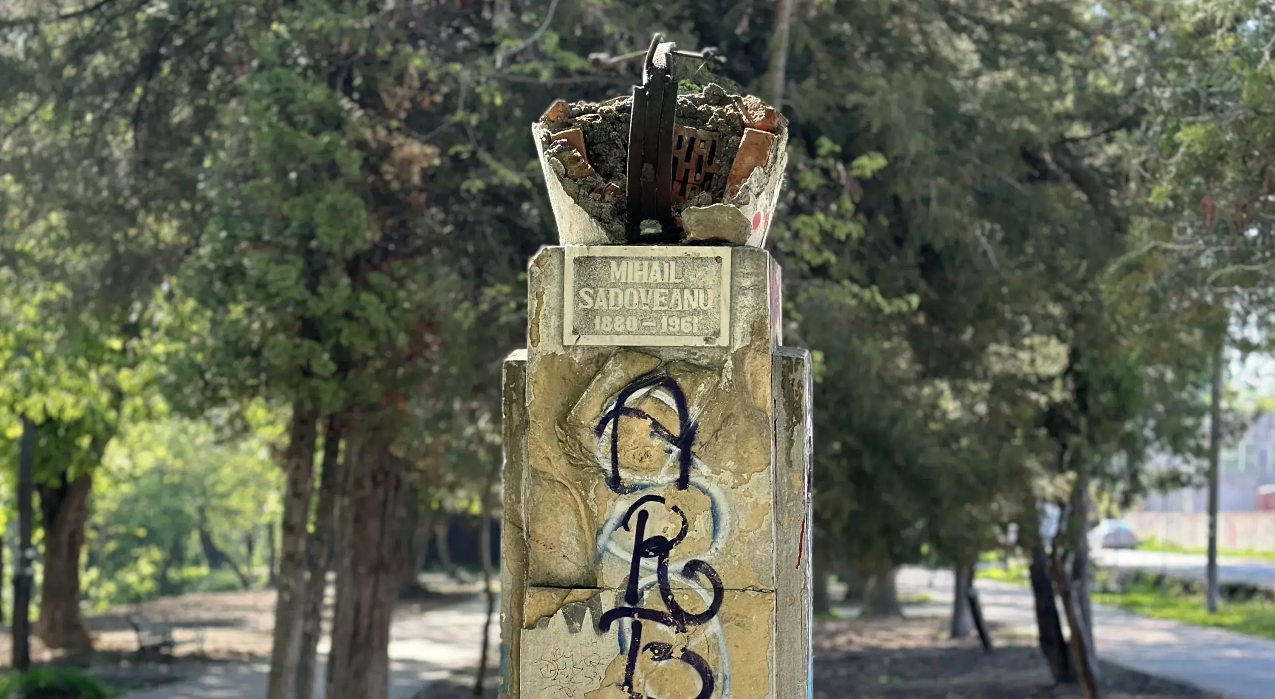 Viceprimarul municipiului, Cristian Ratoi spune ca de vina ar fi tinerii care ar fi distrus, nu doar statuia ci si bancile si cosurile din parc.Dovezi nu sunt, iar lucrurile au ramas asa, de ani de zile.