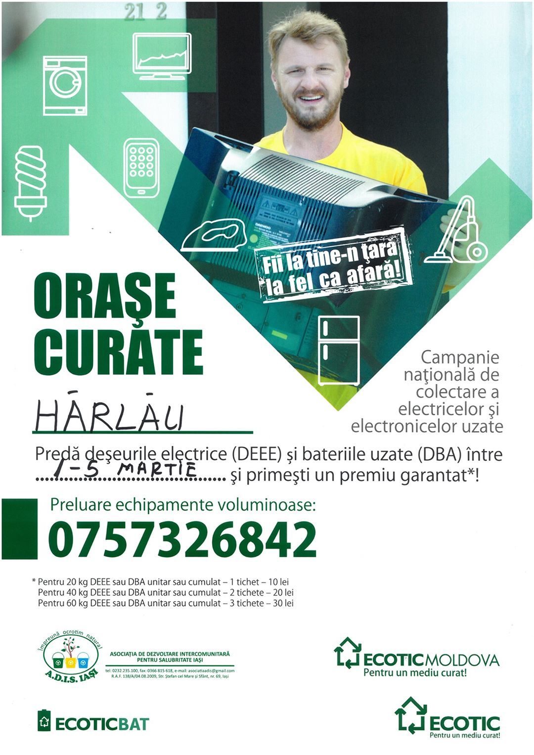 Primavara debuteaza in orasul Harlau cu o campanie de colectare a deseurilor electrice, organziata de administratia locala.