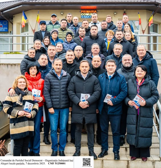 Material publicitar electoral comandat de Partidului Social Democrat – Organizația Județeană Iași • CMF: 51250001 • Alegeri locale parţiale,7 decembrie 2025