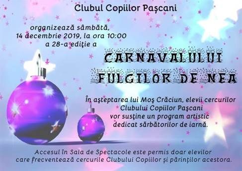 Pe 14 decembrie, de la ora 10:00, va avea loc cea de-a 28-a editie a „Carnavalului fulgilor de nea!”