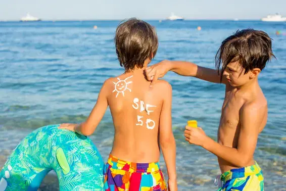 Copiii au în permanenţă nevoie de protecţie împotriva radiaţiei ultraviolete nocive a soarelui, nu numai atunci când sunt la piscină, la plajă sau în vacanţă. Pielea lor trebuie protejată de fiecare dată când ies din casă, iar medicii recomandă ca crema cu un grad de protecţie cât mai ridicat să fie aplicată încă de la vârsta de şase luni.