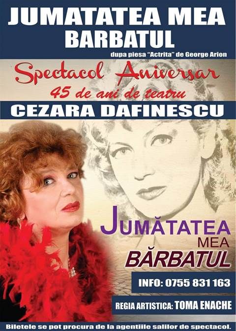 Cezara Dafinescu, marea actrita de la Teatrul National din Bucuresti, vine la Pascani pe 12 noiembrie, in cadrul programului organizat de Casa de Cultura Mihail Sadoveanu Pascani, intitulat „Luna Culturii”. Spectacolul „Jumatatea mea, barbatul!” pus in scena e indragita artista este organizat cu prilejul aniversarii a 45 de ani de cariera in teatru a Cezarei Dafinescu.