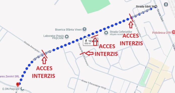 Anunț important pentru șoferii. În cursul zilei de duminică, 18 mai, traficul rutier pe strada Ceferiștilor va fi închis între orele 6 dimineața și 15:00 pe porțiunea de stradă de după intersecția de la VIOSAND până la intersecția cu strada Amurgului. De asemenea, circulația pe strada Mihai Eminescu va fi posibilă până aproape de intersecția, în dreptul intrărilor în parcările blocurilor. Aceste măsuri sunt luate în contextul evenimentului anunțat pentru sfințirea Bisericii Sfânta Vineri din Pașcani.