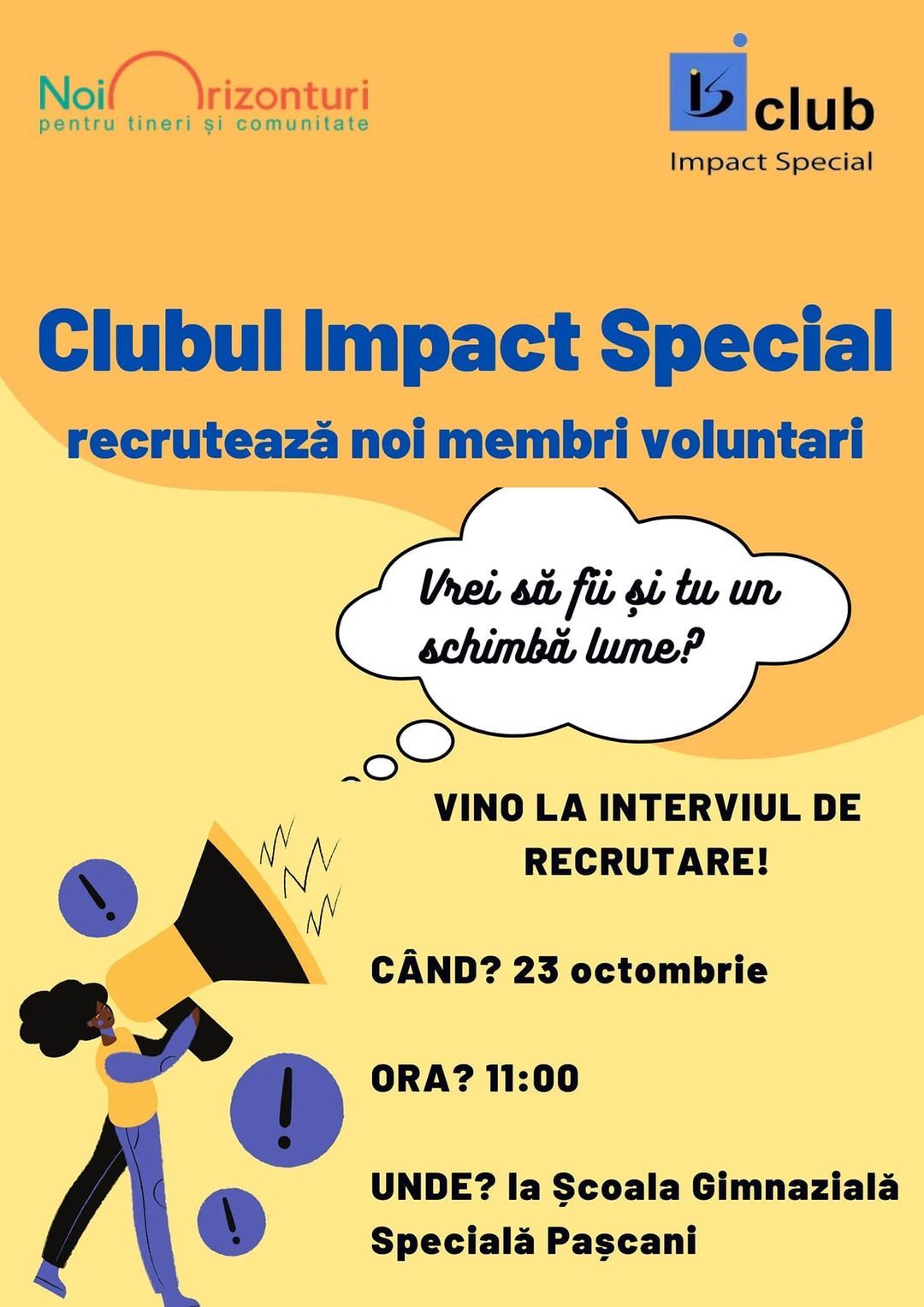 Tânăra echipă care a dat viață poligonului din Pașcani și a lucrat cu multă determinare pentru finalizarea proiectului Impark Zone este în căutare de noi membri. Astfel, cei interesați să-și pună ideile în practică și dornici să facă parte din Clubul Impact Special pot face primul pas, înscriindu-se la interviul de pe 23 octombrie.
