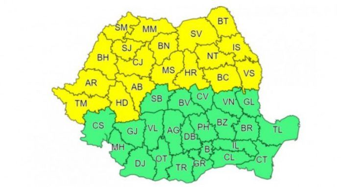 Avertizarea meteo Cod galben de vineri vizează 18 județe: Satu Mare, Maramureș, Sălaj, Bihor, Arad, Timiș, Hunedoara, Alba, Cluj, Bistrița-Năsăud, Mureș, Harghita, Suceava, Neamț, Bacău, Vaslui, Iași și Botoșani.