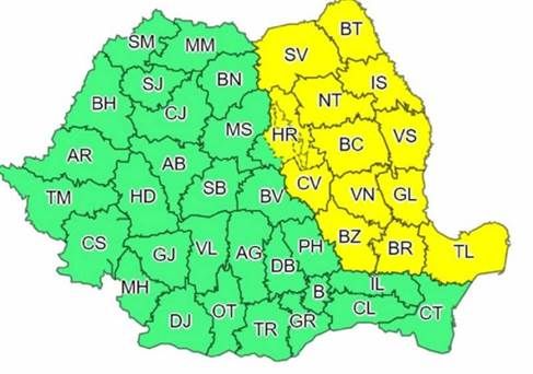 Administraţia Naţională de Meteorologie a emis o nouă informare de vreme rea, valabilă în intervalul 20 noiembrie, ora 6.00 – 21 noiembrie, ora 10.00.