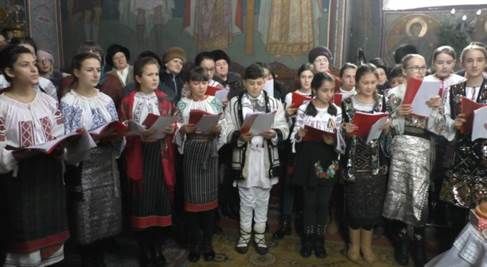 Imbracati in portul popular traditional, circa 30 de elevi de la clasele a V-a si pana la a VIII-a, insotiti de profesori si parinti, au aratat ca obiceiurile stravechi se pastreaza si peste ani.