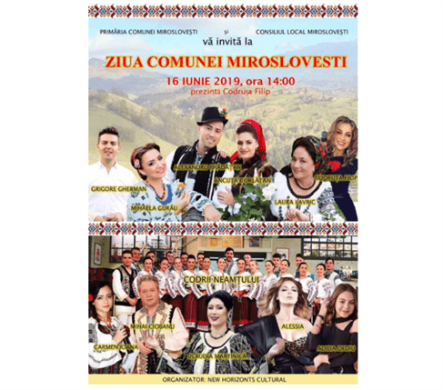 In Duminica Rusaliilor, pe 16 iunie, se anunta mare sarbatoare în comuna Miroslovesti. Ca în fiecare an, localitatea se pregateste pentru sarbatoare iar toti locuitorii se aduna pentru a petrece la ziua comunei lor.
