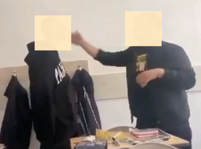 Doi elevi de clasa a VII-a dintr-un școală din municipiul Pașcani și-au împărțit palme peste față, cu putere, chiar în sala de clasă, în timpul unei pauze. Vă atenționăm că urmează imagini și informații cu un puternic impact emoțional. Totul ar fi făcut parte dintr-o înțelegere între cei doi, ca un fel de concurs, în timp ce erau filmați și încurajați de colegi. Imaginile au fost trimise joi seară, 26 ianuarie, pe adresa redacției.