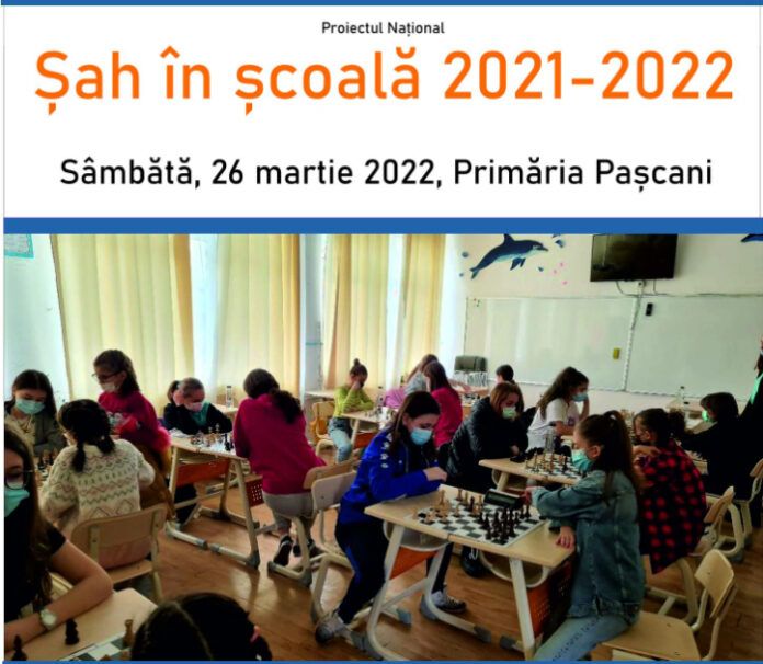 Sâmbătă, 26 martie, începând cu ora 10.00, Primăria Pașcani va găzdui concursul național „Șah în școală”. Competiția se adresează copiilor din oraș dar si din comunele invecinate. Persoanele interesate pot contacta organizatorii pe pagina de Facebook „Șah în școală” sau pe adresa de e-mail sahinscoala@gmail.com.