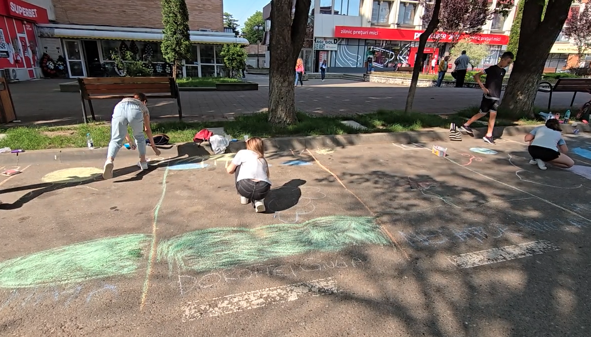 Tot un concurs de desene, dar de această dată pe asfalt a avut loc în centrul municipiului, organizat de Casa de Cultură Mihail Sadoveanu. Copilași de toate vârstele au dat frâu liber creativității și au făcut pe stradă personaje animate, peisaje și alte creații.