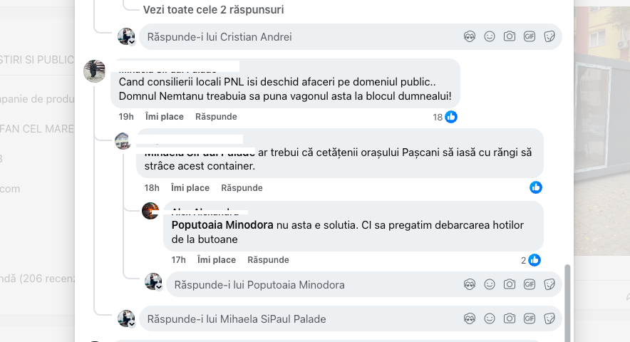 De cealaltă parte, locatarii continuă să reclame faptul că amplasarea chioșcului ar afecta aspectul zonei și accesul la parcare, anunțând că vor strânge semnături pentru a trimite o petiție către Primăria Pașcani.