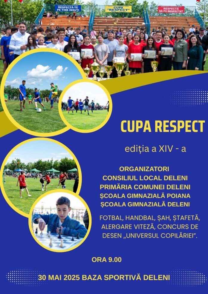Eveniment de anvergură, vineri, 30 mai, de la ora 9:00, în comuna Deleni. Toți copiii din satele componente sunt invitați să participe la Cupa Respect, cea de-a XIV-a ediție, ce va avea loc la baza sportivă.