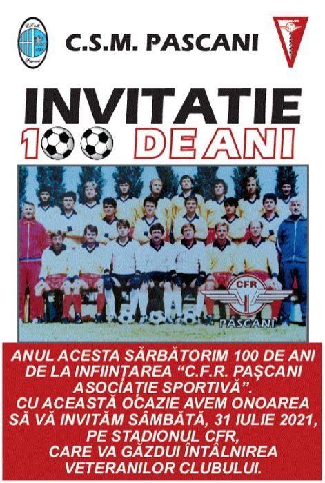 Clubul Sportiv Municipal, care a luat ființă în 1921 sub denumirea de CFR Pașcani, va sărbători anul acesta 100 de ani de la înființare. Evenimentul va avea loc pe 31 iulie, începând cu ora 9.30, iar cu această ocazia va fi organizat un joc de fotbal. De asemenea, se vor înmâna diplome, medalii, dar și tricouri aniversare.