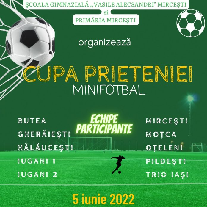 Sfarsitul acestei saptamani aduce la Mircesti un eveniment sportiv de amploare. Scoala Gimnaziala Vasile Alecsandri si Primaria din localitate organizeaza „Cupa Prieteniei” la minifotbal. Pe 5 iunie, sunt asteptate sa joace echipe din Butea, Gheraiesti, Halaucesti, Iugani, Mircesti, Motca, Oteleni, Pildesti si Trio Iasi.