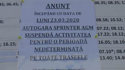 În același context și autogară Sprinter AGM (vis-a-vis de Penny Market) a suspendat cursele pentru toate cele 9 trasee proprii. Măsură a fost luată tot din cauza lipsei de călători, în urmă restricțiilor aplicate la nivel național, de a stă în casă, din cauza pandemiei de coronavirus.