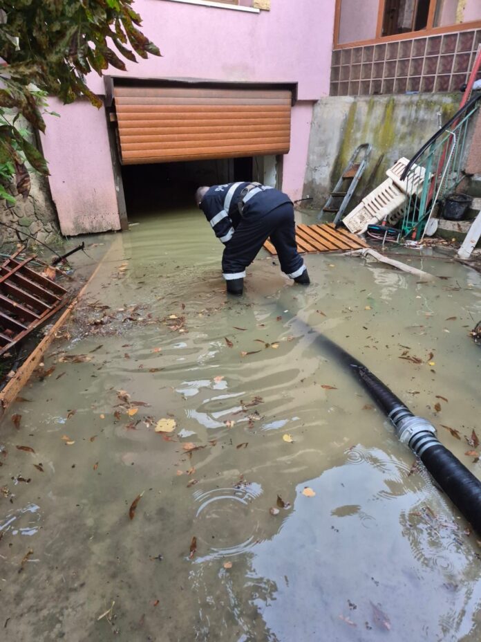 În ajutor au intervenit pompierii militari din oraș, care au scos apa cu o motopompă.