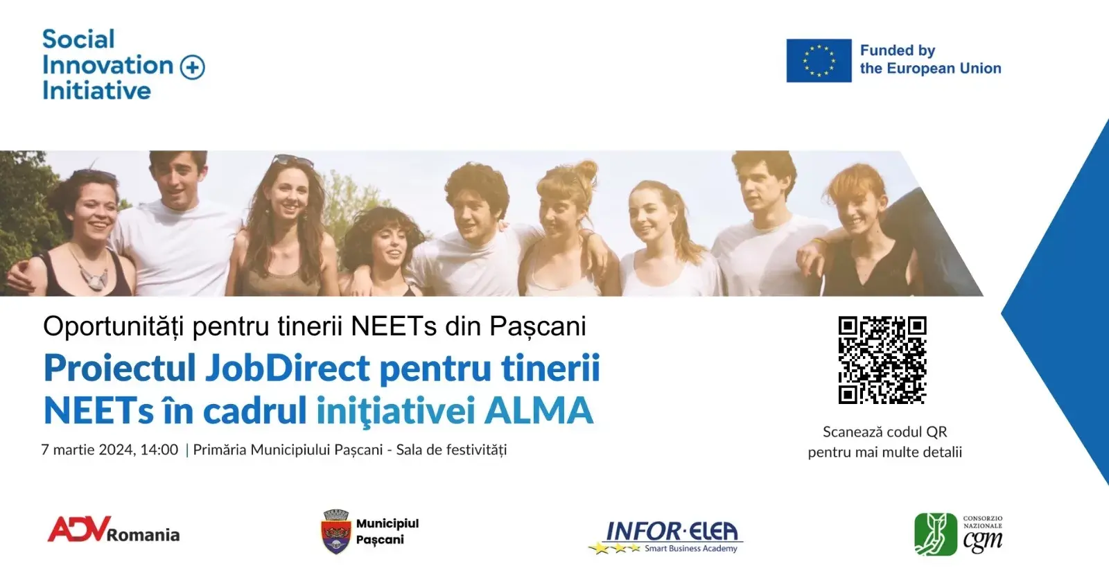 ADV România și Primăria Municipiului Pașcani organizează evenimentul: Oportunități pentru tinerii NEETs din Pașcani: Proiectul „JobDirect pentru tinerii NEETs în cadrul inițiativei ALMA”