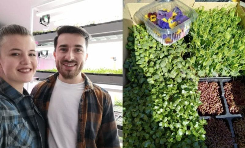 Raluca Blăjuţ şi Andrei Băeanu au 26 şi 31 de ani şi au început să cultive microplante în urmă cu mai puţin de un an, în dormitor. Între timp, şi-au deschis o microfermă la Cotnari, au construit o seră pentru flori comestibile, vor să lanseze o linie de ambalare a salatelor şi, cu ajutorul FabLab, vor să scoată pe piaţă un kit care le va permite bucătarilor amatori să-şi cultive propriile microplante în bucătărie. Microplantele sunt, de fapt, plantele obişnuite, din seminţe obişnuite, dar care sunt lăsate să crească doar câteva zile.