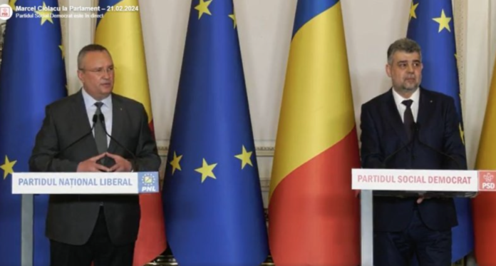 Liderii coaliţiei, Marcel Ciolacu şi Nicolae Ciucă, anunţă, miercuri, într-o conferinţă de presă comună decizia luată cu privire la comasarea alegerilor.