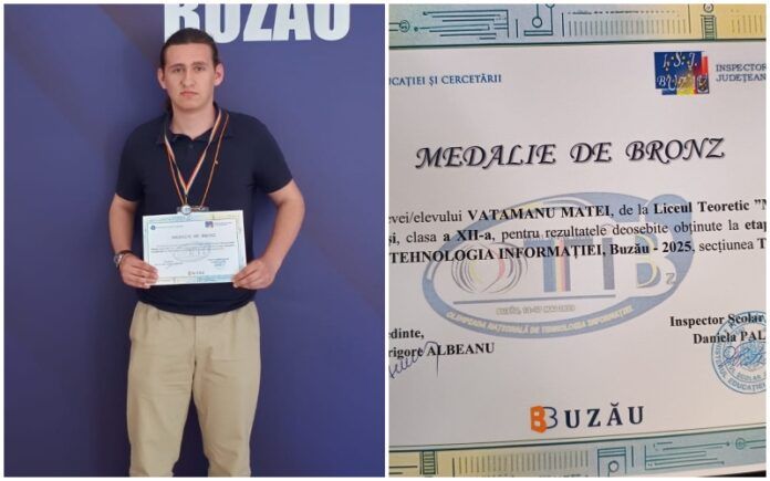 Vatamanu Matei, din clasa a XII-a C, coordonat de doamna profesor, Emilia Coșniță a obținut medalie de bronz la faza națională a Olimpiadei de Tehnologia informației, ce s-a desfășurat în perioada 13-16 mai 2025, la Buzău.