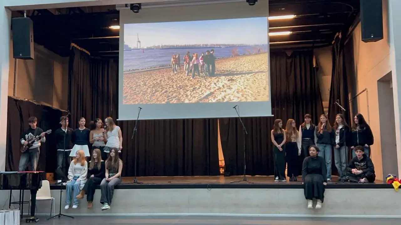 Ultima zi a mobilității de grup de la Stadtteilschule Fischbek-Falkenberg, Hamburg, Germania a fost ziua prezentării produsului final al activităților, ca parte a unui spectacol pe care elevii si profesorii gazdā l-au pregătit si care a inclus piese de teatru, cor și interpretări individuale ale elevilor. Finalul acestui spectacol a aparținut elevilor noştri şi corespondenților lor germani, care au îmbinat cântecele cu dansul și filmările video, interpretând cântecul pregătit la repetițiile din această săptămână, învǎțând versurile în limba germanǎ şi în limba românǎ. Limbajul comun al artelor spectacolului i-a unit frumos, coeziunea grupului, eforturile serioase ale echipei au dat roade făcând ca barierele lingvistice și emoționale să dispară și să avem parte de un moment superb care a încântat profesorii și elevii gazdelor aflați în public.