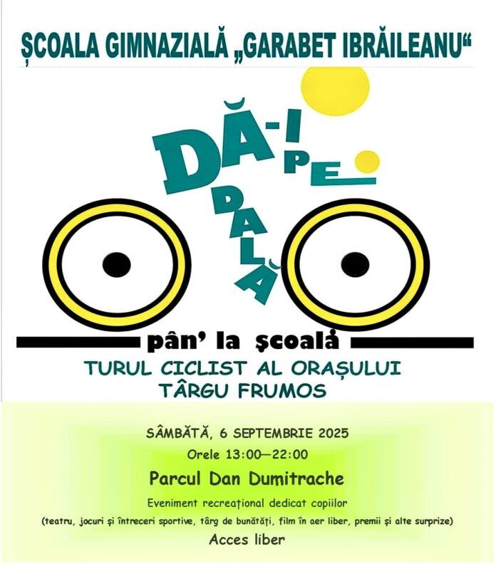 Pe final de vacanță școlară, sâmbătă, 6 septembrie 2025, orașul Târgu Frumos va găzdui un concurs de biciclete destinat elevilor de toate vârstele. Evenimentul, intitulat sugestiv „Dă-i pedală, pân’la școală” este organizat de Școala Gimnazială Garabet Ibrăileanu și a fost inițiat de învățătorul, Petru Butnaru. Anul acesta, a ajuns la cea de-a VIII-a ediție.