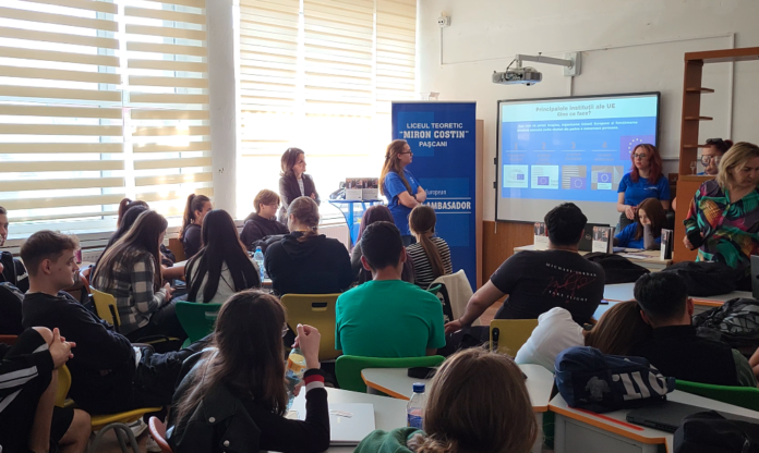 Elevii de la Liceul Teoretic „Miron Costin” din municipiul Pașcani, Școala Ambasador a Parlamentului European, au mers prin unitățile de învățământ din oraș pentru a discuta cu tinerii despre ce înseamnă Uniunea Europeană și alegerile europene.