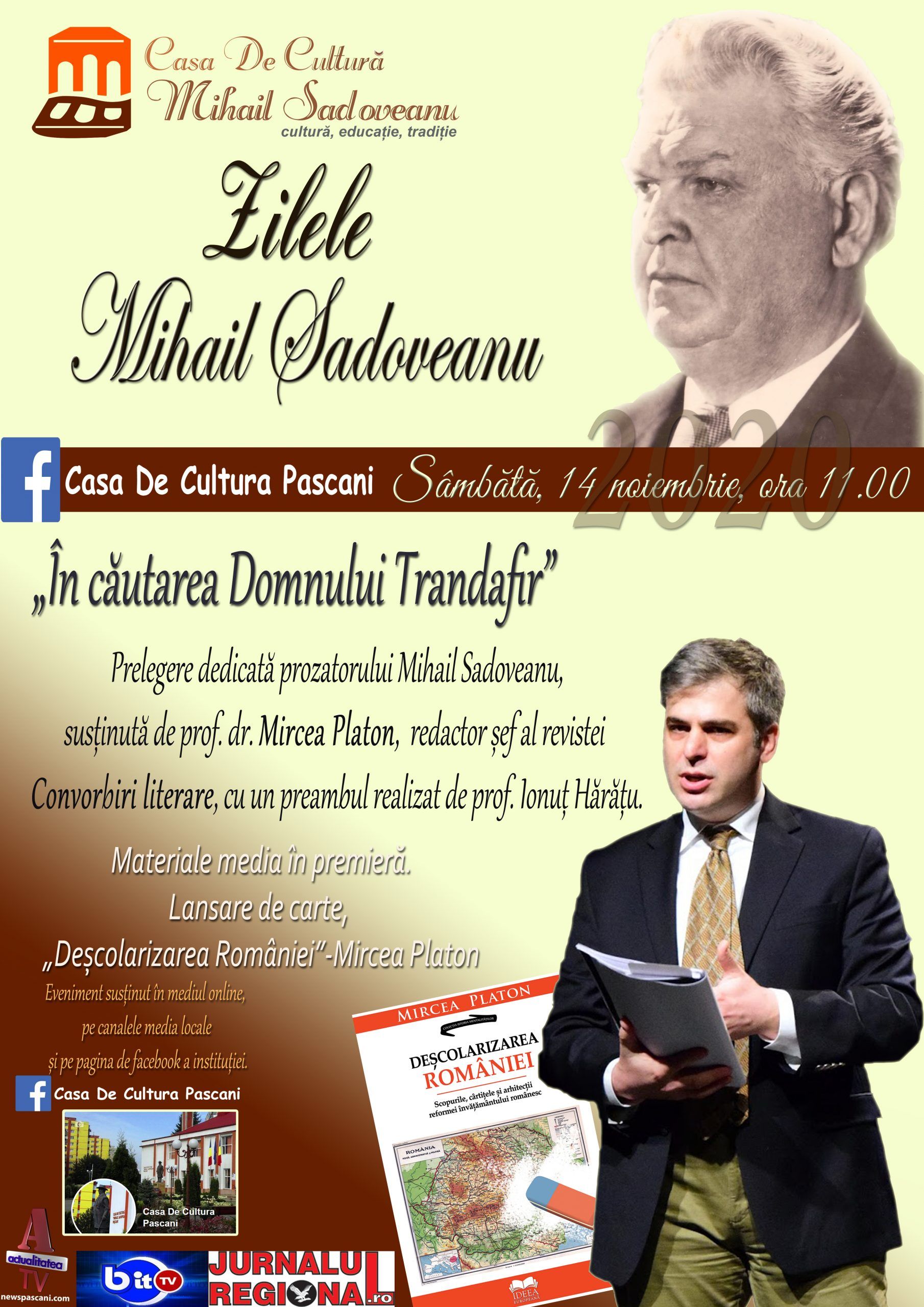 Tema acestei prelegeri este În căutarea Domnului Trandafir . De asemenea va avea loc și lansare de carte – Deșcolarizarea României scrisă tot de Mircea Platon. Evenimentul are loc cu ocazia aniversării celor 140 de ani de la nașterea prozatorului pășcănean.