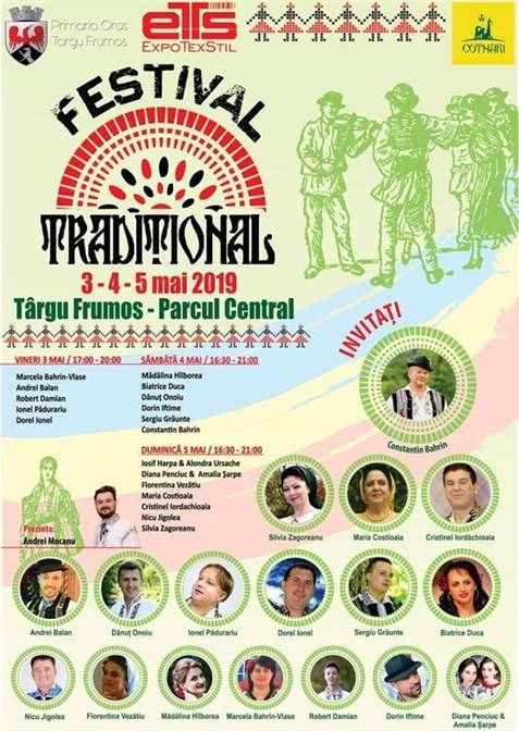 Primaria municipiului Targu Frumos va invita sa participati la Festivalul Traditional ce se va desfasura in weekend-ul 3-5 mai, in Parcul Central, incepand cu orele 17:00.