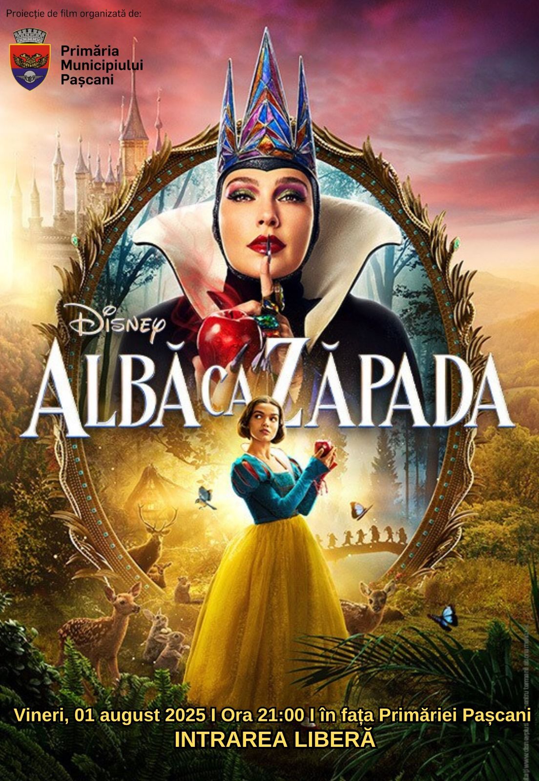 O nouă zi de vineri, un nou film în piateța Primăriei Pașcani. Pe 1 august 2025, de la ora 21:00, va rula proiecția filmului „Albă ca Zăpada”.