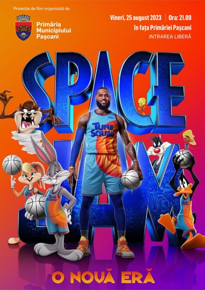 Sfarsitul de saptamana aduce un nou film in aer liber la Pascani. Primaria Municipiului Pascani a anuntat faptul ca: „Vineri, 25 august, începând cu ora 21:00, în fața primăriei vom difuza filmul „Space Jam: O nouă eră”, ce-l are în rol principal pe cvadruplul campion NBA, LeBron James”.
