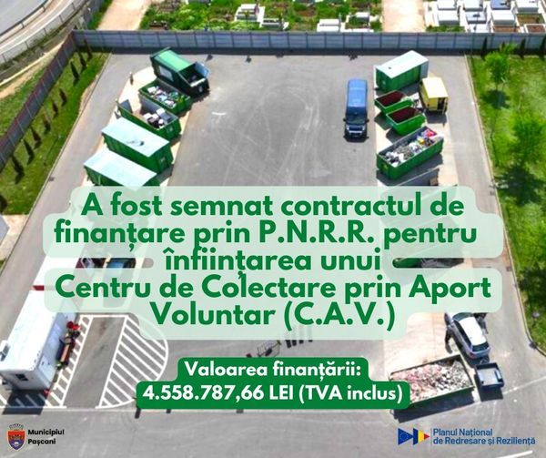 Municipiul Pascani va avea un centru ce colectare prin aport voluntar. Platforma pentru depozitare ar urma sa fie amenajata pana in toamna anului viitor, la serele Primariei Pascani, din fonduri comunitare. In acest sens administratia locala a semnat contractul de finantare, in cadrul Programului National de Redresare si Rezilienata, valoarea finantarii nerambursabile fiind de peste 4,5 milioane de lei.